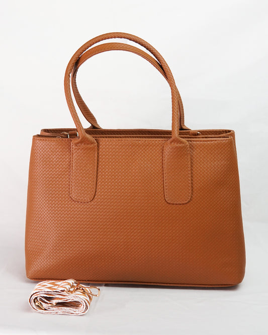 Textured Classic Tote Bag – Tan Brown