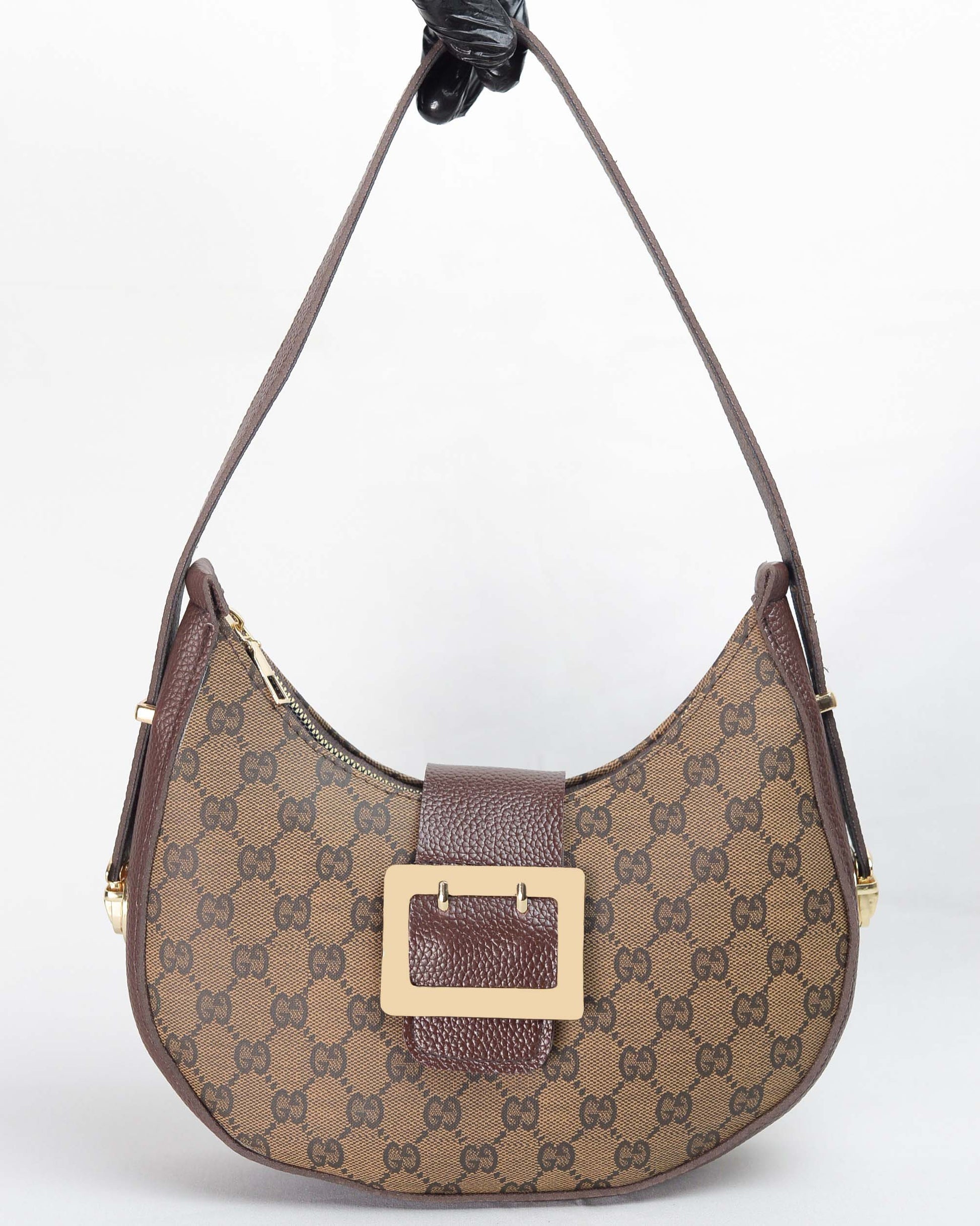 The Signature Monogram Hobo Bag features a classic curved silhouette with an elegant monogram design and statement buckle detail. Designed with a comfortable shoulder strap and secure zip closure, it’s perfect for everyday essentials while adding a timeless touch to any outfit. Ideal for daily wear, casual outings, or evening looks.