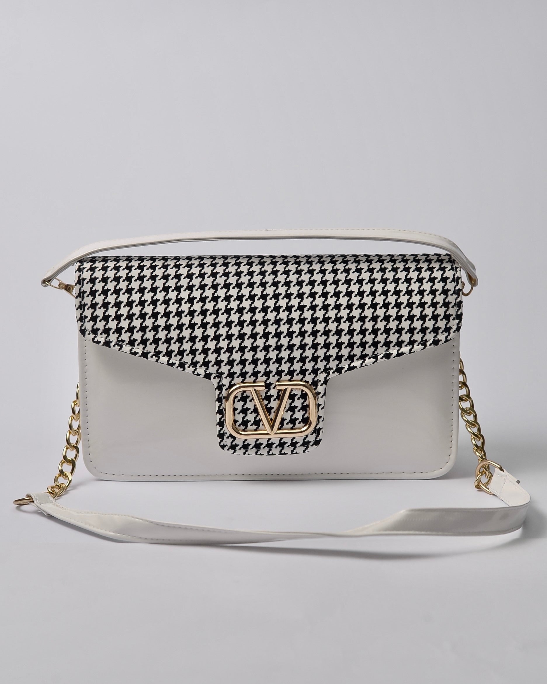 The V-Logo Structured Shoulder Bag features a sleek silhouette with signature V-logo hardware and a refined flap design. Crafted with a premium finish, it includes a top handle and a detachable shoulder strap for versatile styling. Compact yet spacious, this elegant bag is perfect for everyday wear, casual outings, or evening looks. Available in multiple stylish colours to complement every wardrobe.